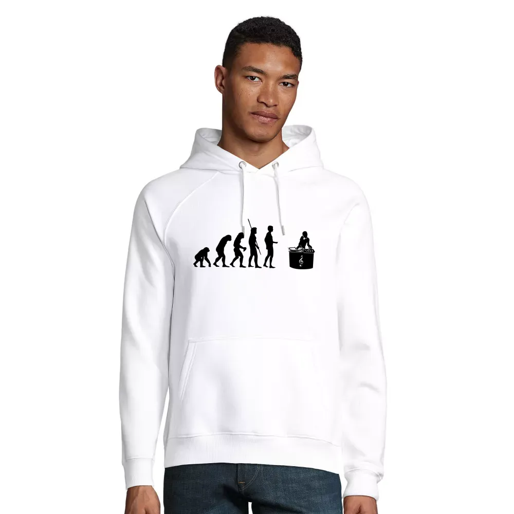 Bestelle hier dein DJ Evolution Hoodie aus 80 % Bio-baumwolle - 20 % recyceltes Polyester und gestallte es individuell nach deinen Vorstellungen. Kombiniere dein DJ Evolution Hoodie mit dem dazu passenden T-Shirt sowie Capi für ein rundum stimmiges Outfit.