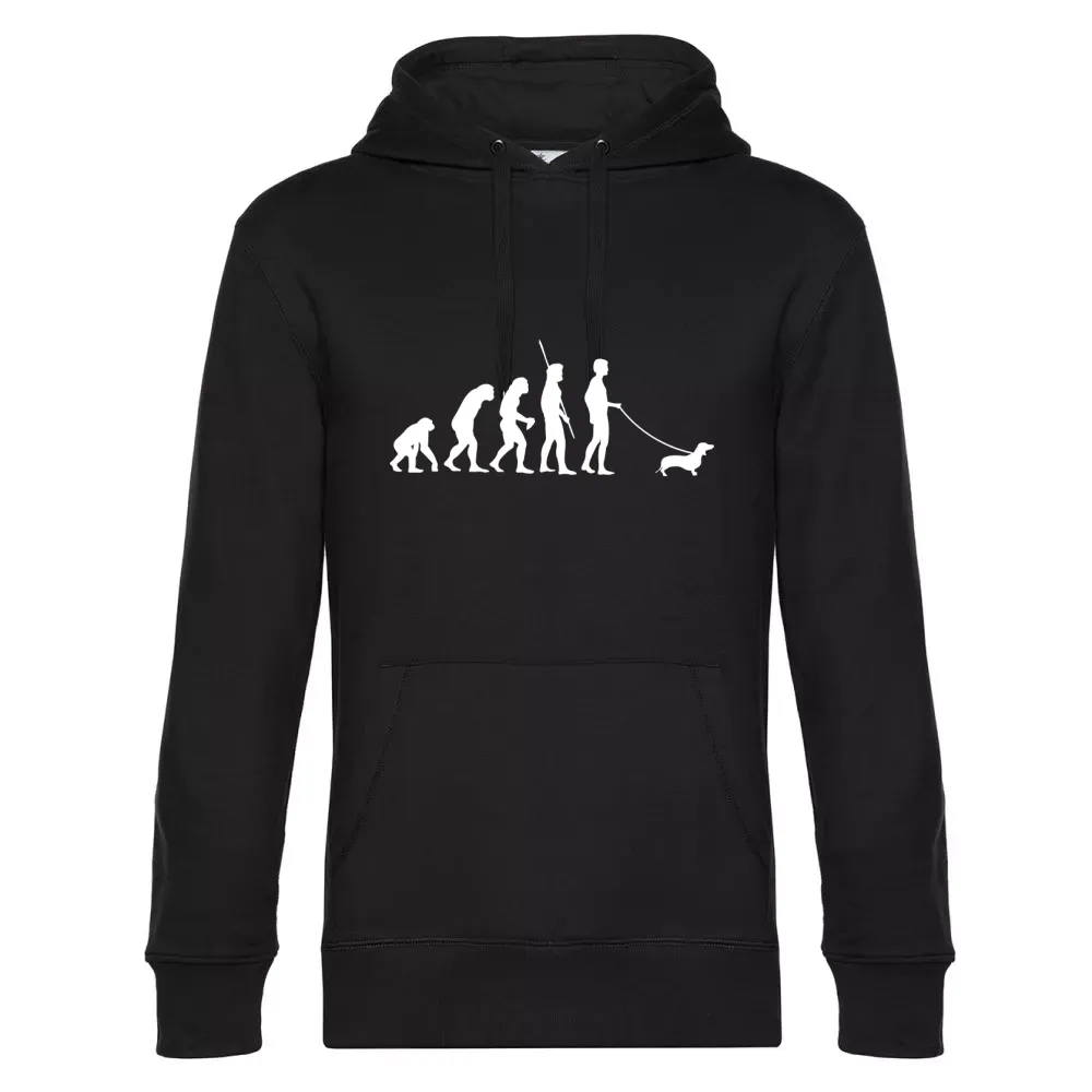 Setze ein Zeichen für Individualität und deinen besonderen Sinn für Humor mit dem Evolution Dackel Motiv auf Männer Hoodie. Perfekt für alle, die ihren Dackel nicht nur im Herzen, sondern auch in ihrer Kleidung tragen möchten.
