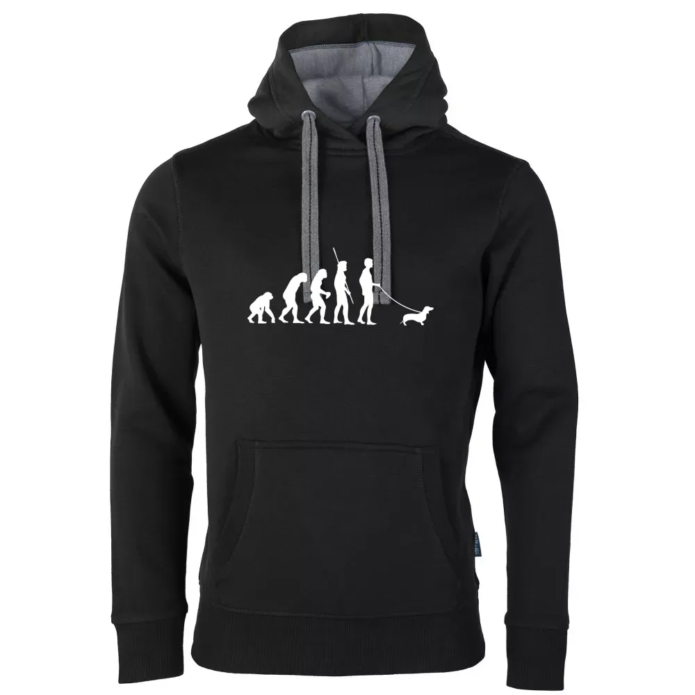 Setze ein Zeichen für Individualität und deinen besonderen Sinn für Humor mit dem Evolution Dackel Motiv auf kontrastkapuzen Männer Hoodie. Perfekt für alle, die ihren Dackel nicht nur im Herzen, sondern auch in ihrer Kleidung tragen möchten.
