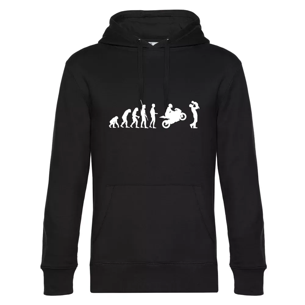 Bestelle hier dein Evolution Motorrad mit Vater und Kind Hoodie aus 80 % einlaufvorbehandelte, ringgesponnene, Baumwolle, gekämmt - 20 % Recyceltes Polyester und gestallte es individuell nach deinen Vorstellungen. Kombiniere dein Evolution Motorrad mit Vater und Kind Hoodie mit dem dazu passenden T-Shirt sowie Capi für ein rundum stimmiges Outfit.