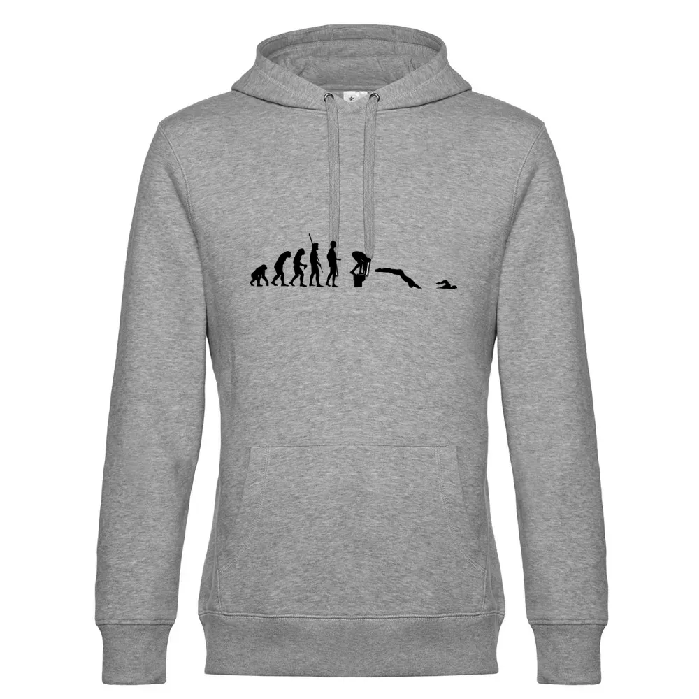 Zeigen Sie Ihre Hingabe zum Schwimmen mit diesem einzigartigen Jugendlichen und gleichzeitig stilvollen Männer Hoodie. Es eignet sich hervorragend als Geschenk für Schwimmfreunde oder als persönliches Statement für sich selbst. Tragen Sie die Botschaft der Evolution und der Freude am Schwimmen überall hin mit.