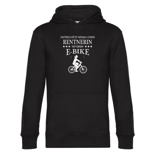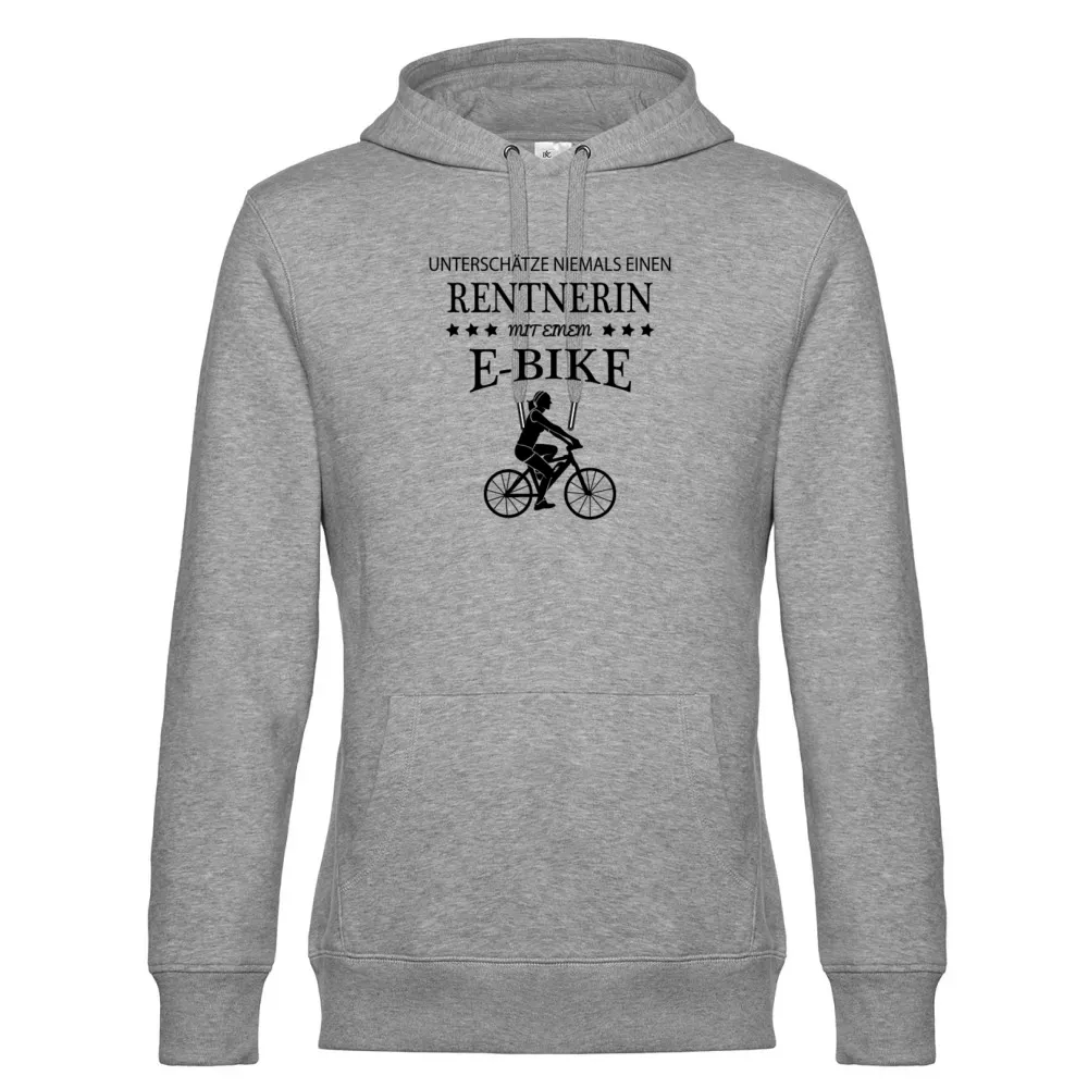 Bestelle hier dein Fahrrad Ebike Rentnerin E-Bike Rente Bike Spruch Hoodie aus 80 % einlaufvorbehandelte, ringgesponnene, Baumwolle, gekämmt - 20 % Recyceltes Polyester und gestallte es individuell nach deinen Vorstellungen. Kombiniere dein Fahrrad Ebike Rentnerin E-Bike Rente Bike Spruch Hoodie mit dem dazu passenden T-Shirt sowie Capi für ein rundum stimmiges Outfit.
