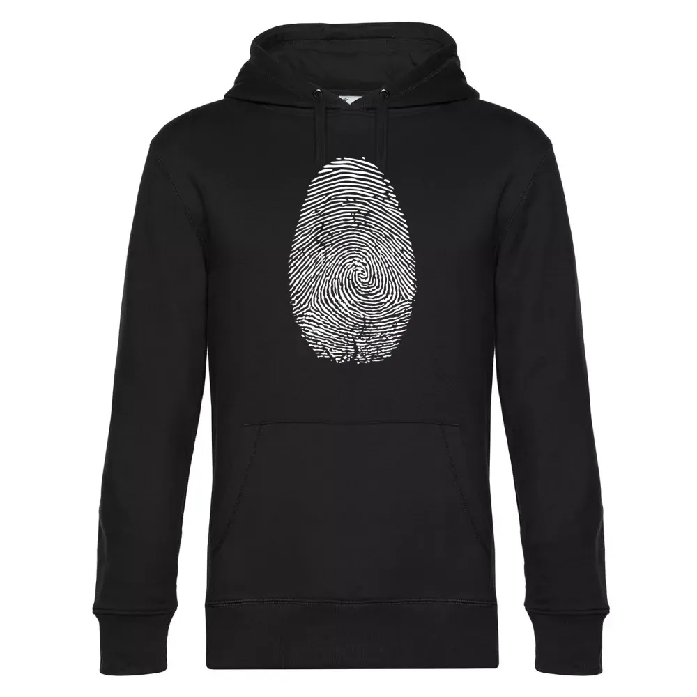 Hergestellt aus hochwertigem 80 % einlaufvorbehandelte, ringgesponnene, Baumwolle, gekämmt - 20 % Recyceltes Polyester, bietet das Männer Hoodie nicht nur ein angenehmes Tragegefühl, sondern auch die nötige Langlebigkeit. Die detaillierte Darstellung des Fingerabdrucks kommt in Kombination mit dem weichen Stoff besonders gut zur Geltung und wird schnell zum Lieblingsstück in deiner Garderobe.