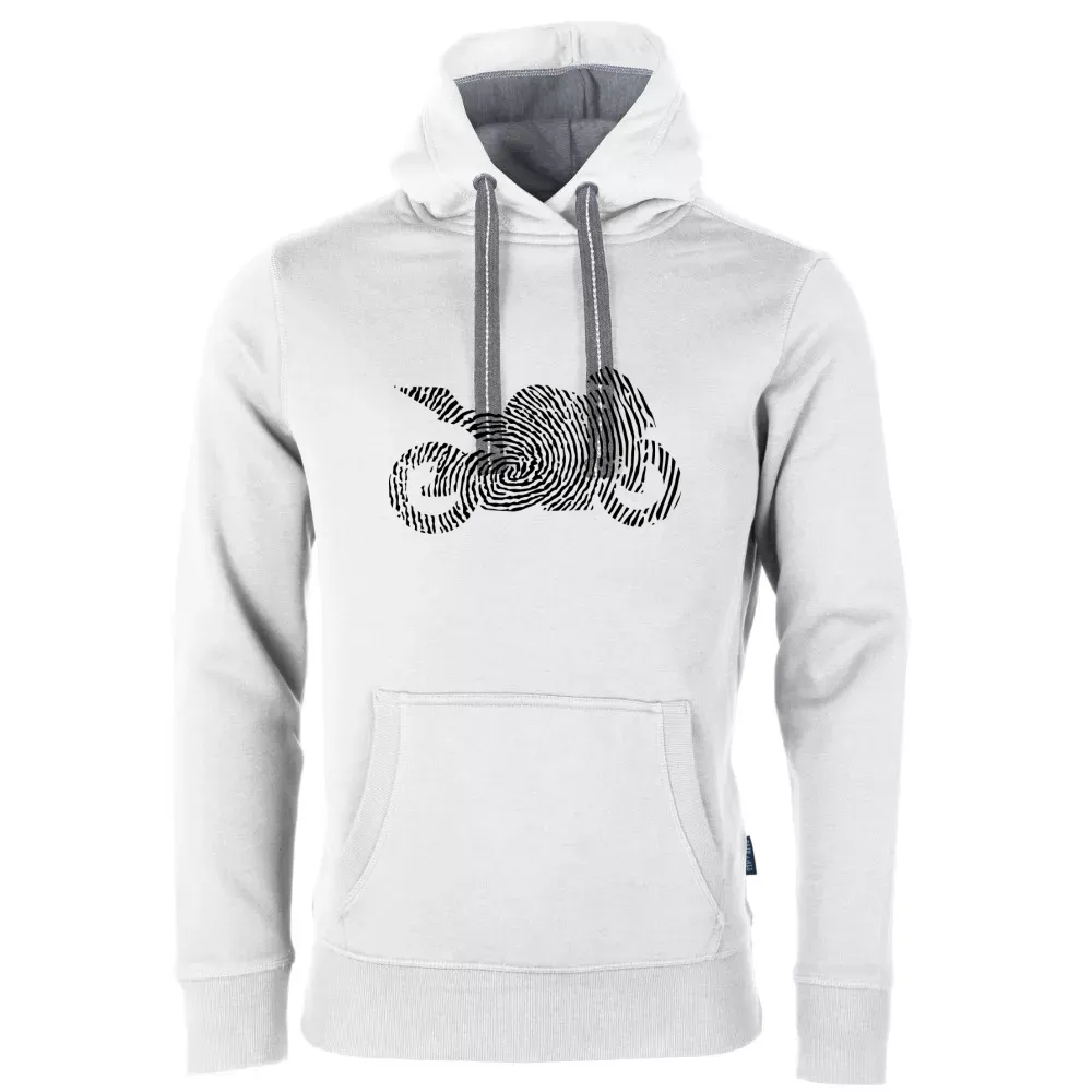 Ein einzigartiger Fingerabdruck-Motivan auf kontrastkapuzen Männer Hoodie, der Individualität und Leidenschaft für das Motorradfahren perfekt vereint. Hier trifft kreatives Design auf eine persönliche Note. Jedes Detail des Fingerabdrucks spiegelt die Einzigartigkeit jedes Fahrers wider und macht das Kleidungsstück zu einem echten Hingucker.