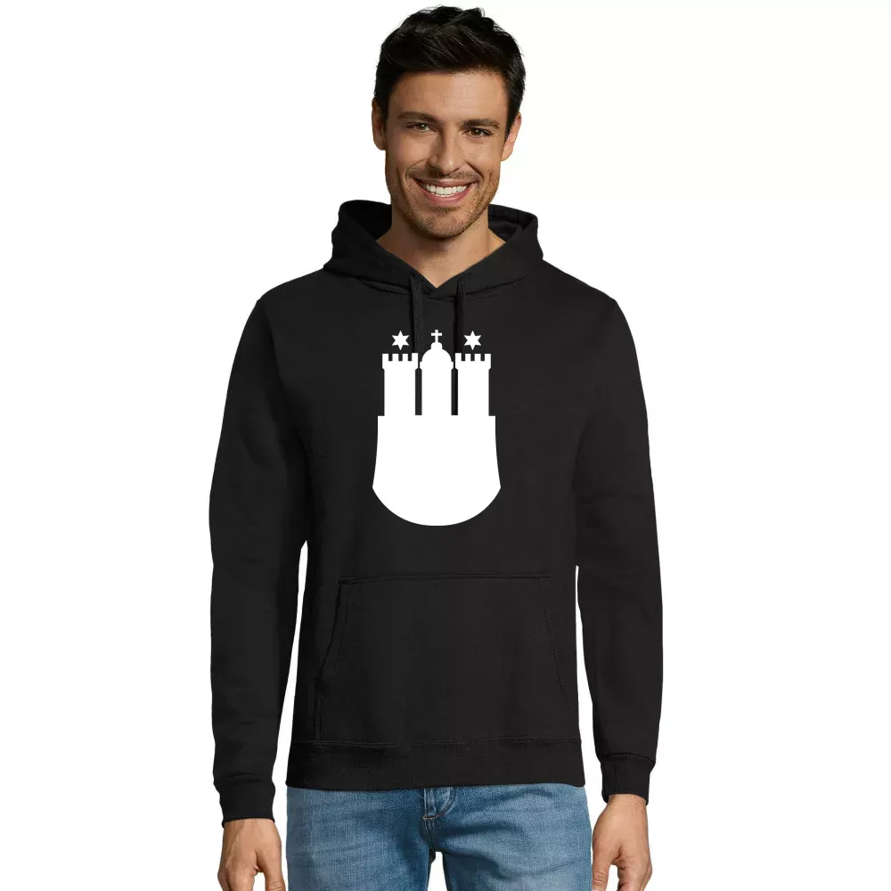 Das Motiv zeigt mit viel Liebe zum Detail das Wappen von Hamburg, das die Tradition und Geschichte der Stadt verkörpert. Tragen Sie dieses Kapuzenpulli Männer Hoodie bei Ihren Freizeitaktivitäten oder entspannen Sie in der Stadt, während Sie Ihre Verbundenheit zu Hamburg zeigen.
