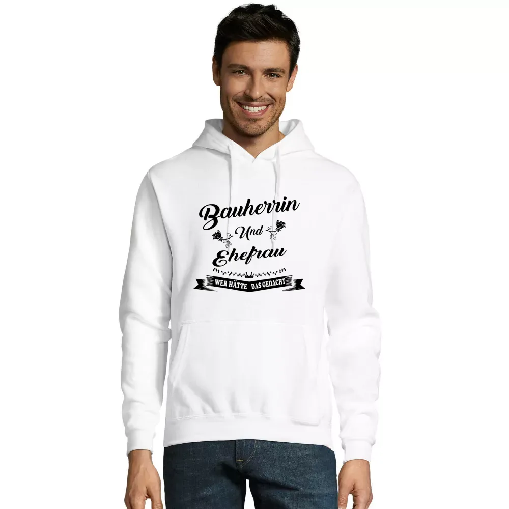 Ehefrau, Bauherrin, und das Herz des Hauses – mit unserem einzigartigen Motiv „Hausbau Ehegattin Bauherrin“ bringen wir eine ganz besondere Botschaft auf Kapuzenpulli Männer Hoodie. Diese Kollektion richtet sich an alle, die den Traum vom Eigenheim verwirklichen möchten und dabei die Unterstützung ihrer Partnerin schätzen.