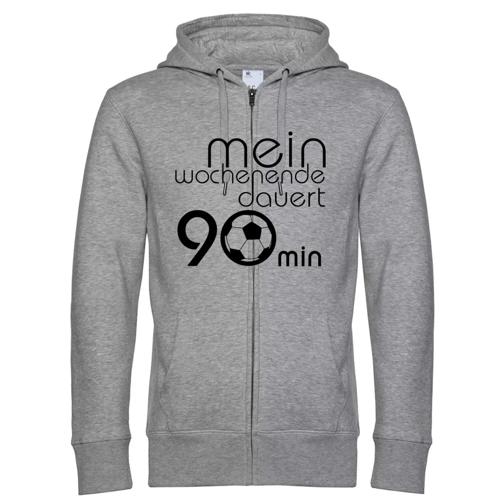 Bestelle hier dein mein Wochenende dauert 90min Hoodie aus 80 % einlaufvorbehandelte, ringgesponnene, Baumwolle, gekämmt - 20 % Recyceltes Polyester und gestallte es individuell nach deinen Vorstellungen. Kombiniere dein mein Wochenende dauert 90min Hoodie mit dem dazu passenden T-Shirt sowie Capi für ein rundum stimmiges Outfit.