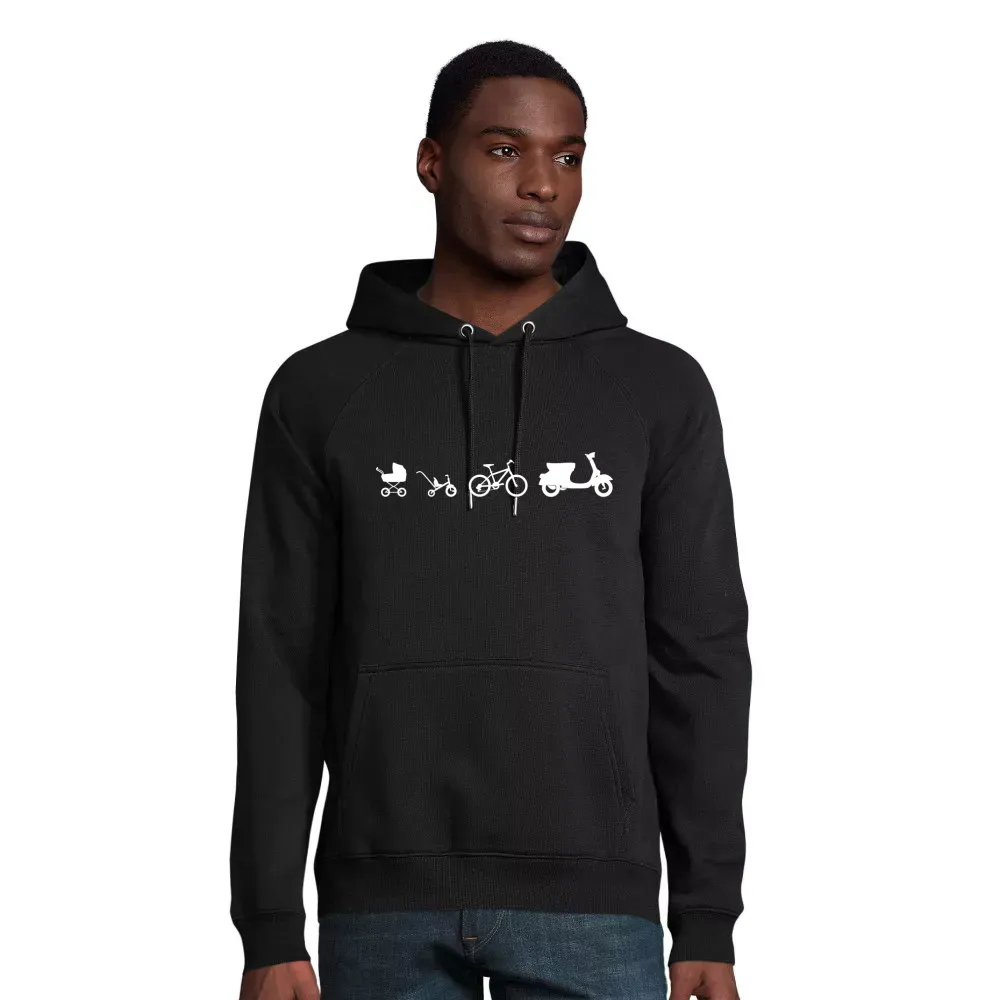 Bestelle hier dein Motorroller Evolution Hoodie aus 80 % Bio-baumwolle - 20 % recyceltes Polyester und gestallte es individuell nach deinen Vorstellungen. Kombiniere dein Motorroller Evolution Hoodie mit dem dazu passenden T-Shirt sowie Capi für ein rundum stimmiges Outfit.