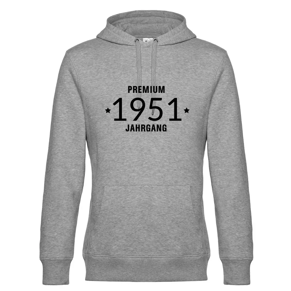 Bestelle hier dein Premiumjahrgang 1951 Hoodie aus 80 % einlaufvorbehandelte, ringgesponnene, Baumwolle, gekämmt - 20 % Recyceltes Polyester und gestallte es individuell nach deinen Vorstellungen. Kombiniere dein Premiumjahrgang 1951 Hoodie mit dem dazu passenden T-Shirt sowie Capi für ein rundum stimmiges Outfit.