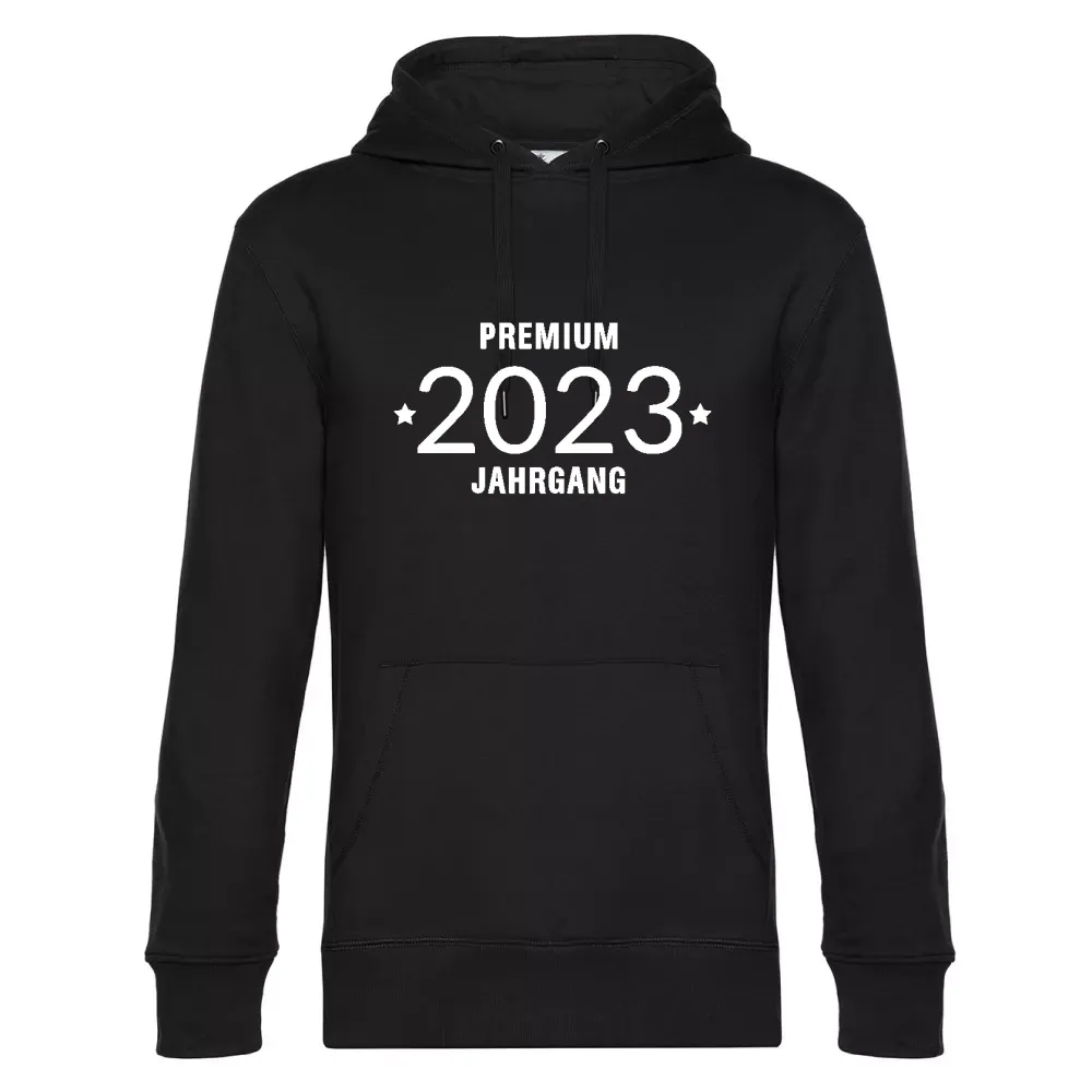 Bestelle hier dein Premiumjahrgang 2023 Hoodie aus 80 % einlaufvorbehandelte, ringgesponnene, Baumwolle, gekämmt - 20 % Recyceltes Polyester und gestallte es individuell nach deinen Vorstellungen. Kombiniere dein Premiumjahrgang 2023 Hoodie mit dem dazu passenden T-Shirt sowie Capi für ein rundum stimmiges Outfit.