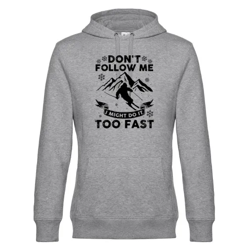 Bestelle hier dein Ski Skifahrer Skifahren Nicht Folgen Zu Schnell Hoodie aus 80 % einlaufvorbehandelte, ringgesponnene, Baumwolle, gekämmt - 20 % Recyceltes Polyester und gestallte es individuell nach deinen Vorstellungen. Kombiniere dein Ski Skifahrer Skifahren Nicht Folgen Zu Schnell Hoodie mit dem dazu passenden T-Shirt sowie Capi für ein rundum stimmiges Outfit.