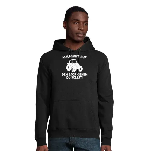 Setze ein Zeichen mit deinem individuellen Look und bestelle noch heute dein nachhaltiger Männer Hoodie mit dem witzigen Motiv Traktor Nicht Auf Den Sack Gehen Du Sollst! und genieße jeden Moment, den du in diesem tollen Kleidungsstück verbringst.