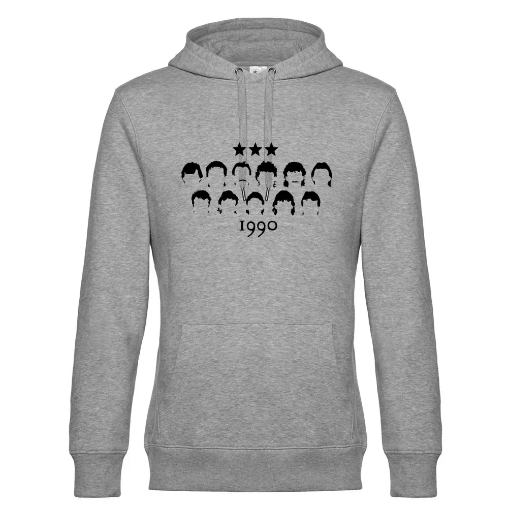 Bestelle hier dein Weltmeistermannschaft 1990 Hoodie aus 80 % einlaufvorbehandelte, ringgesponnene, Baumwolle, gekämmt - 20 % Recyceltes Polyester und gestallte es individuell nach deinen Vorstellungen. Kombiniere dein Weltmeistermannschaft 1990 Hoodie mit dem dazu passenden T-Shirt sowie Capi für ein rundum stimmiges Outfit.