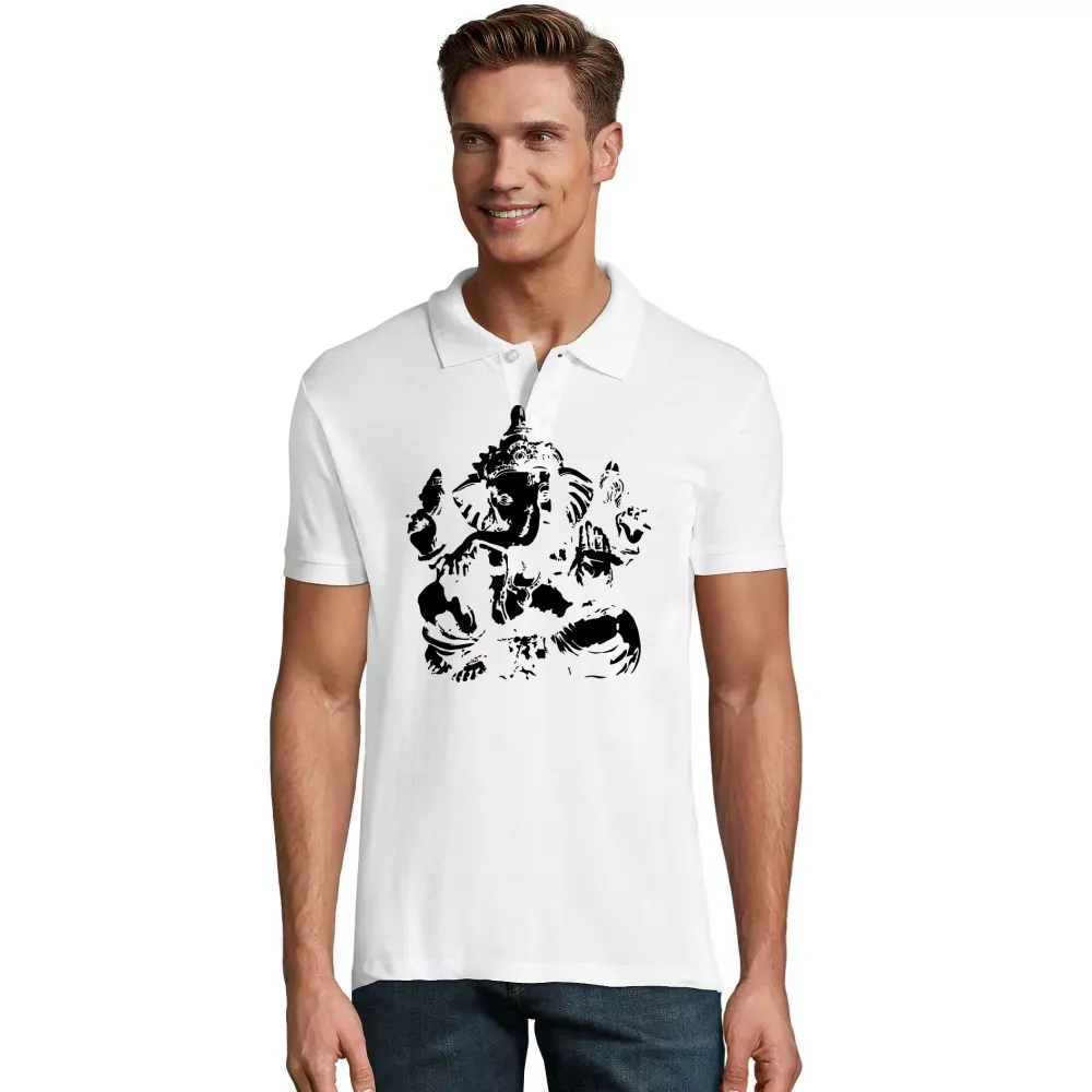 Ganesha, der indische Gott des Erfolgs und der Weisheit, ist ein kraftvolles Symbol, das Tradition und Spiritualität verkörpert. Dieses Motiv auf einem Männer Polo bringt eine besondere Ausstrahlung und positive Energie in deinen Alltag.