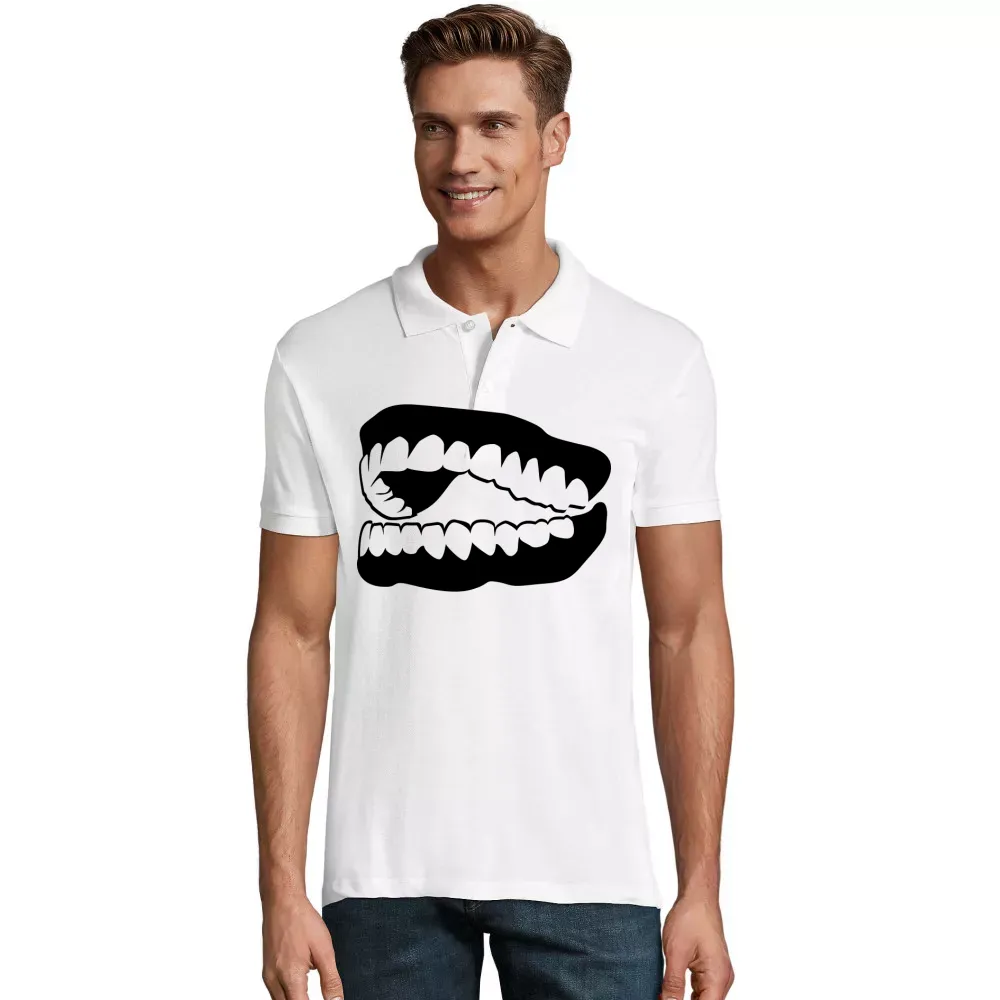 Ein lächelndes Gebiss ist nicht nur eine humorvolle Darstellung, sondern auch ein Ausdruck von Lebensfreude und positiven Vibes. Dieses einzigartige Motiv auf einem Männer Polo bringt garantiert gute Laune in deinen Alltag. Ob beim Entspannen, beim Treffen mit Freunden oder beim Sport – mit diesem auffälligen Design lenkst du die Blicke auf dich.