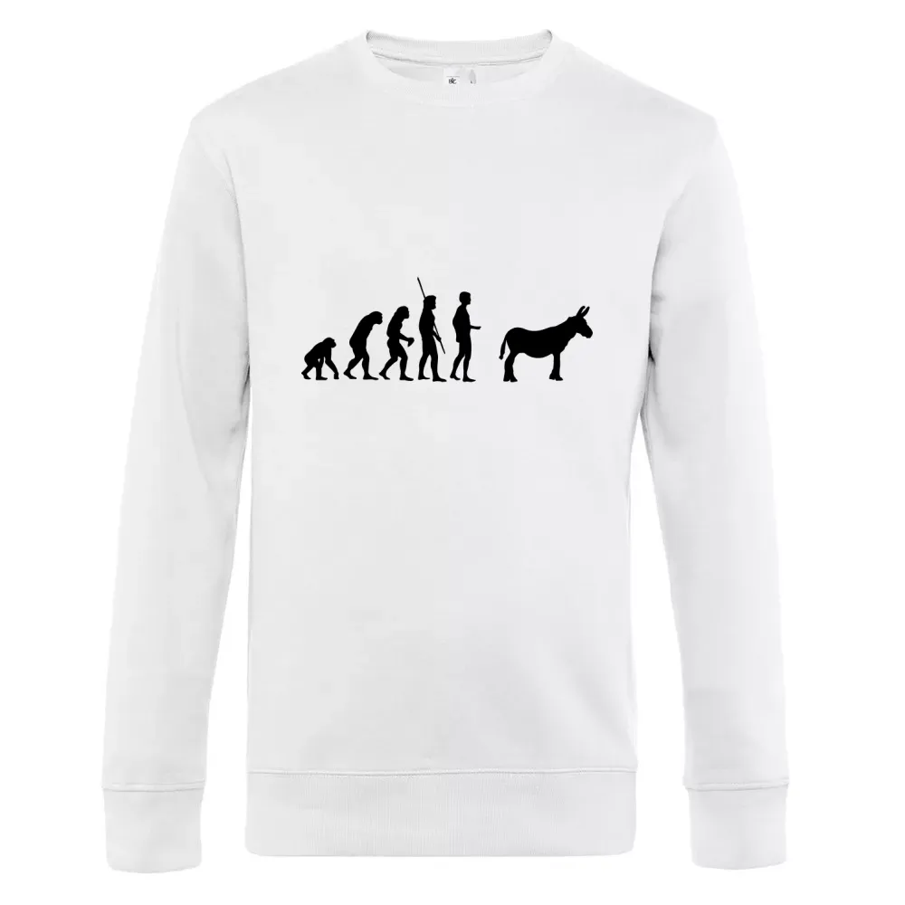 Hergestellt aus hochwertigem 80 % einlaufvorbehandelte, ringgesponnene, Baumwolle, gekämmt - 20 % Recyceltes Polyester, bietet das Männer Sweat nicht nur eine ansprechende Optik, sondern auch eine angenehme Haptik. Egal, ob beim Ausgehen oder bei entspannenden Stunden zu Hause – das Motiv Evolution Esel sorgt dafür, dass du immer gut aussiehst.