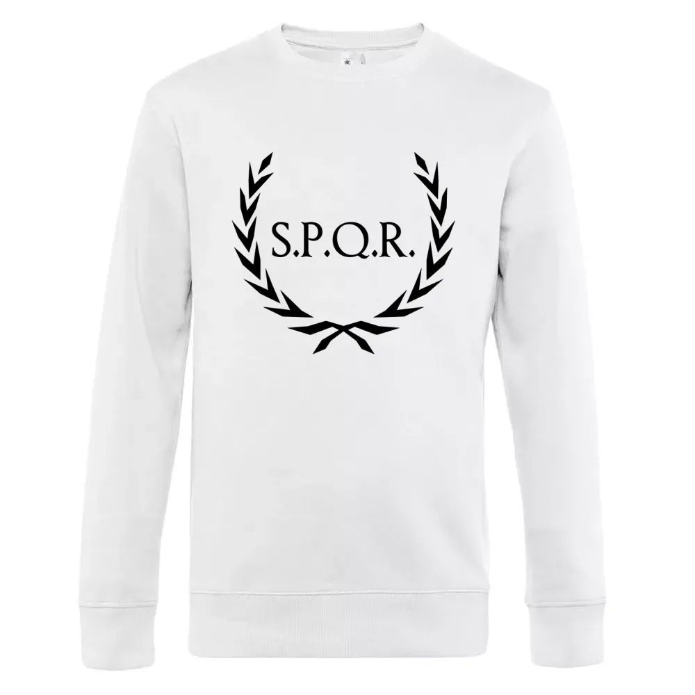 Das Motiv des Lorbeerkranzes, kombiniert mit dem klassischen SPQR-Design, ist eine zeitlose Hommage an die antike römische Kultur. Dieses eindrucksvolle Symbol steht für Sieg, Ehre und die Vielfalt der römischen Geschichte. Auf einem Männer Sweat wirkt der Lorbeerkranz besonders ansprechend und verleiht jedem Outfit einen Hauch von Geschichte und Stil.