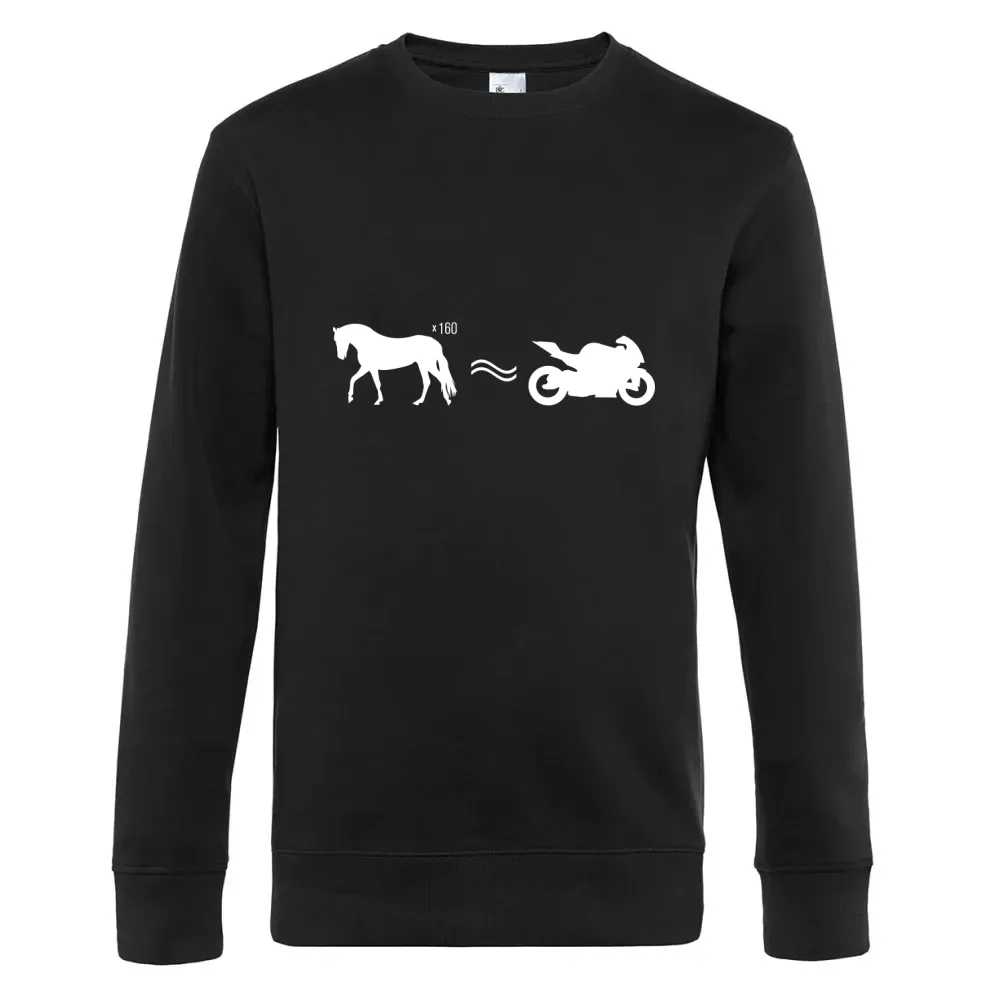 Bestelle hier dein Pferd ist Motorrad Sweat aus 80 % einlaufvorbehandelte, ringgesponnene, Baumwolle, gekämmt - 20 % Recyceltes Polyester und gestallte es individuell nach deinen Vorstellungen. Kombiniere dein Pferd ist Motorrad Sweat mit dem dazu passenden T-Shirt sowie Capi für ein rundum stimmiges Outfit.