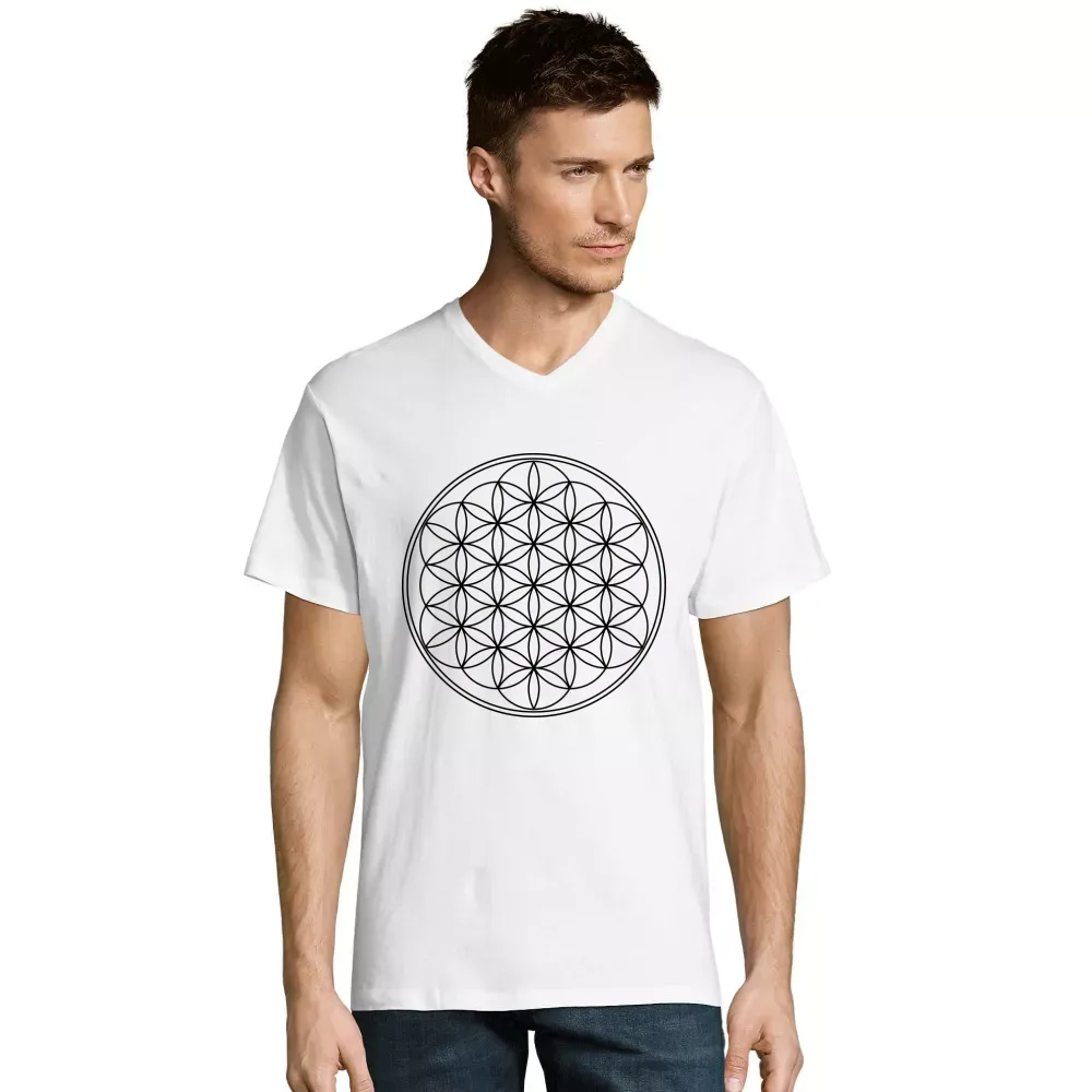 Wählen Sie unser V-Ausschnitt Männer T-Shirt mit dem Blume des Lebens Design und genießen Sie die perfekte Kombination aus Style und Bedeutung. Der 100 % Baumwolle sorgt dafür, dass Sie sich den ganzen Tag über wohlfühlen und gleichzeitig in jeder Situation gut aussehen. Erleben Sie die Kraft der Symbolik und machen Sie unseren V-Ausschnitt Männer T-Shirt zu einem festen Bestandteil Ihrer Garderobe.