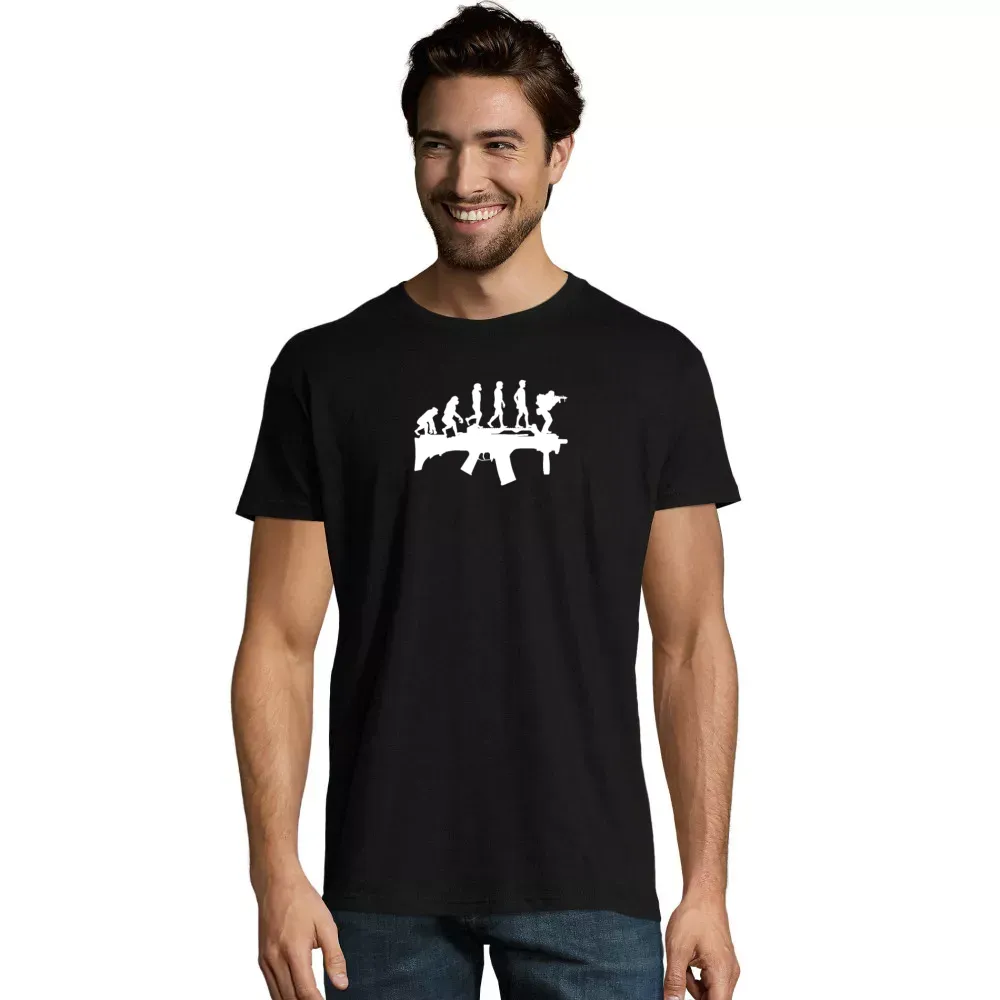 Bestelle hier dein Bundeswehr Soldaten Evolution - Gewehr Soldat Evo T-Shirt aus 100 % halbgekämmte Baumwolle Ringspun und gestallte es individuell nach deinen Vorstellungen. Kombiniere dein Bundeswehr Soldaten Evolution - Gewehr Soldat Evo T-Shirt mit dem dazu passenden Hoodie sowie Capi für ein rundum stimmiges Outfit.