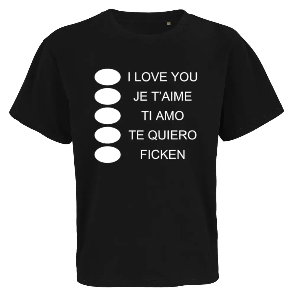 Bestelle hier dein Die Sprachen der Liebe T-Shirt aus 50 % Baumwolle, 50 % recycelte Baumwolle und gestallte es individuell nach deinen Vorstellungen. Kombiniere dein Die Sprachen der Liebe T-Shirt mit dem dazu passenden Hoodie sowie Capi für ein rundum stimmiges Outfit.