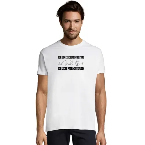 Entdecken Sie unser einzigartiges Motiv Einfache Frau liebt Pferde und Wein – perfekt für alle, die die Freiheit der Natur und die Gemütlichkeit eines guten Glases Wein schätzen. Dieses Design passt ideal zu einem entspannten Lebensstil und zieht Bewunderer an, egal wo Sie hingehören – ob beim Ausritt, in der Weinstube oder einfach nur beim Chillen mit Freunden.