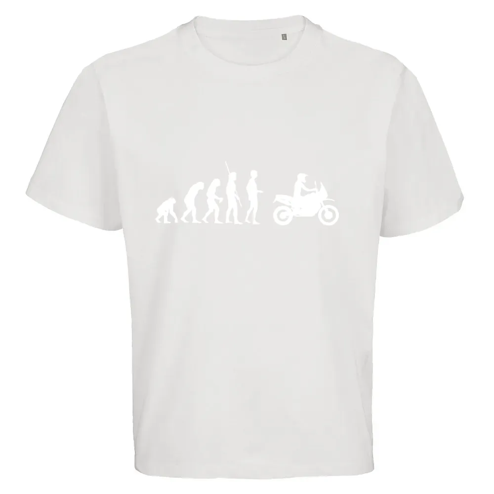 Die detailreiche Grafik zeigt den evolutionären Weg des Motorrads, kombiniert mit dynamischen Elementen, die die Energie und den Spaß am Endurofahren perfekt einfangen. Egal, ob du ein erfahrener Fahrer bist oder einfach die Outdoor-Kultur schätzt, dieses Design wird dich immer motivieren, neue Herausforderungen zu meistern.