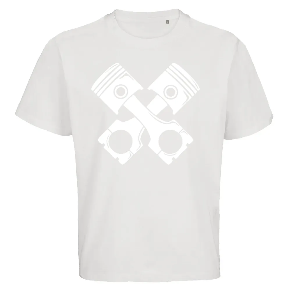 Bestelle hier dein kreuzende Motorkolben T-Shirt aus 50 % Baumwolle, 50 % recycelte Baumwolle und gestallte es individuell nach deinen Vorstellungen. Kombiniere dein kreuzende Motorkolben T-Shirt mit dem dazu passenden Hoodie sowie Capi für ein rundum stimmiges Outfit.