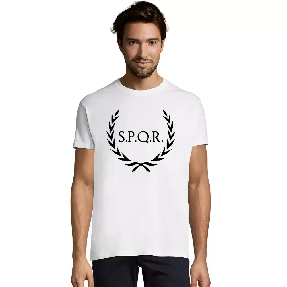 Entdecke unser einzigartiges Motiv „Lorbeerkranz SPQR Rom“ auf Männer T-Shirt. Der Lorbeerkranz hat eine lange Geschichte und steht für Sieg und Ehre, was dieses Design zu einem besonders eindrucksvollen Eyecatcher macht.