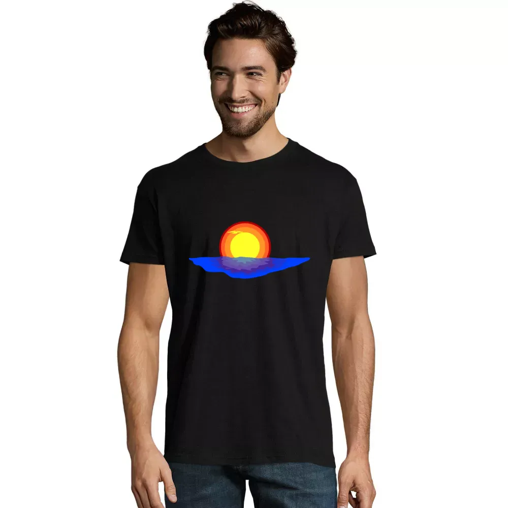 Entdecke das atemberaubende Motiv Sonnenuntergang im Meer auf unserem Männer T-Shirt. Dieses Design fängt die magische Stimmung eines Sonnenuntergangs ein und bringt die warmen Farben des Himmels sowie die ruhigen Wellen des Meeres direkt auf dein Kleidungsstück. Ob beim entspannten Spaziergang am Strand oder beim Treffen mit Freunden – mit diesem einzigartigen Motiv bist du immer stimmungs- und stilvoll gekleidet.