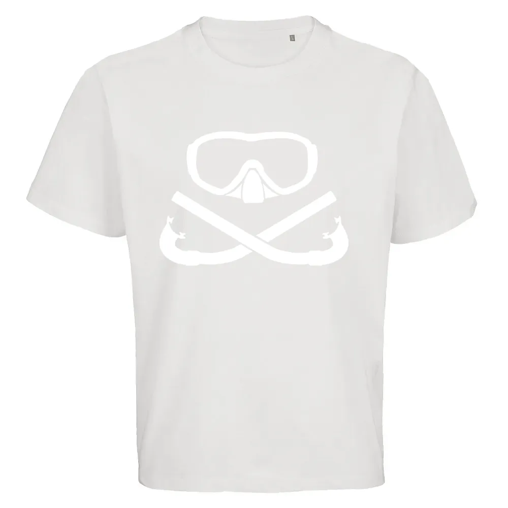 Das Motiv ist ein echter Hingucker und lässt die Herzen von Tauchern und Wassersportbegeisterten höherschlagen. Die Kombination aus Taucherbrille und gekreuzten Schnorcheln symbolisiert Freiheit und Abenteuerlust und bringt ein Stück Urlaubsgefühl in deinen Kleiderschrank.