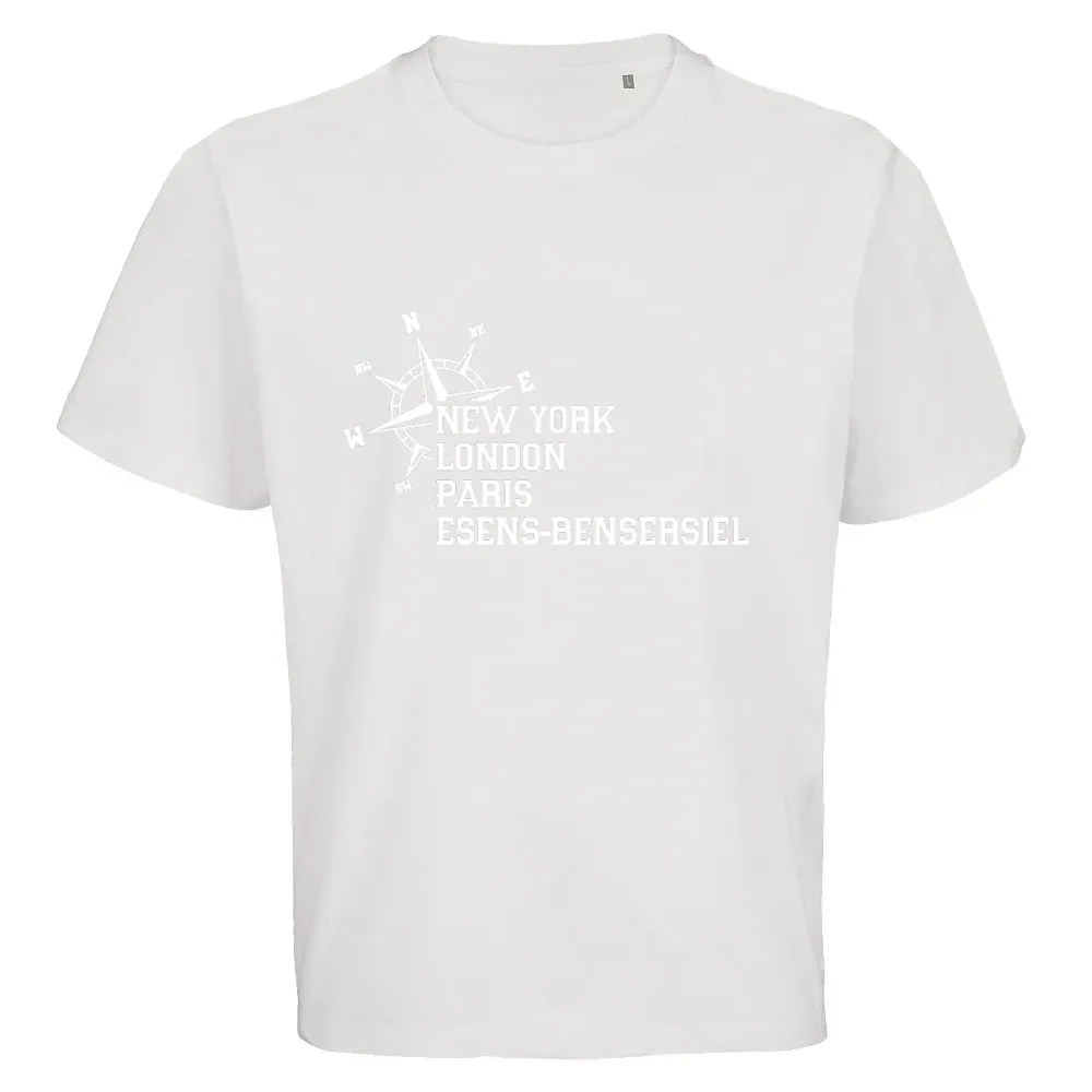Erlebe die einzigartige Verbindung von Tradition und Moderne mit unserem T-Shirtmotiv „Weltstadt Esens-Bensersiel“. Diese charmante Region im Herzen Ostfrieslands begeistert mit einer idyllischen Lage zwischen malerischen Landschaften und der Nordseeküste. Esens ist nicht nur für seine märchenhafte Altstadt bekannt, sondern auch für den angrenzenden Kurort Bensersiel, der als Tor zum Weltnaturerbe Wattenmeer gilt.