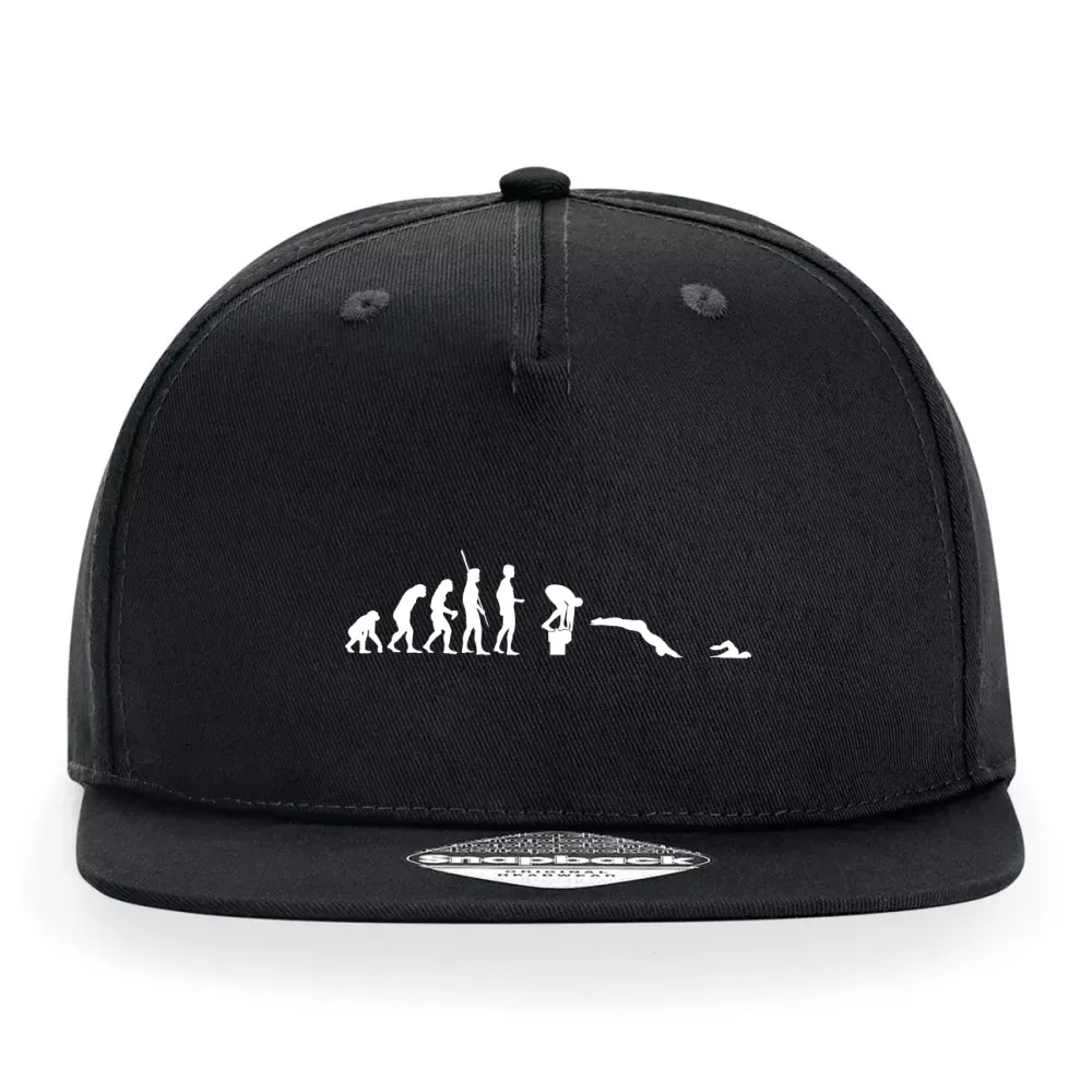 Das Motiv Evolution Schwimmer auf diesem Sonstig. Cap symbolisiert den Wandel und die Leidenschaft für das Schwimmen. Es zeigt auf kreative Weise, wie sich der Mensch im Laufe der Zeit entwickelt hat, mit einem klaren Fokus auf die Schönheit und den Sport des Schwimmens. Ob beim Training im Schwimmbad oder beim Entspannen am Strand, dieses Design stellt eine starke Verbindung zur Sportart her und spricht Schwimmbegeisterte an.