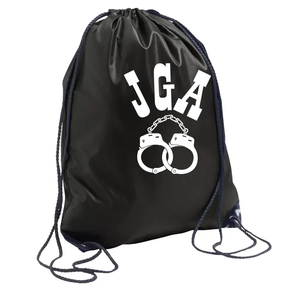 Bestelle hier dein Junggesellenabschied JGA Handschellen Rucksack aus 100 % Polyester und gestallte es individuell nach deinen Vorstellungen. Kombiniere dein Junggesellenabschied JGA Handschellen Rucksack mit dem dazu passenden T-Shirt sowie Capi für ein rundum stimmiges Outfit.