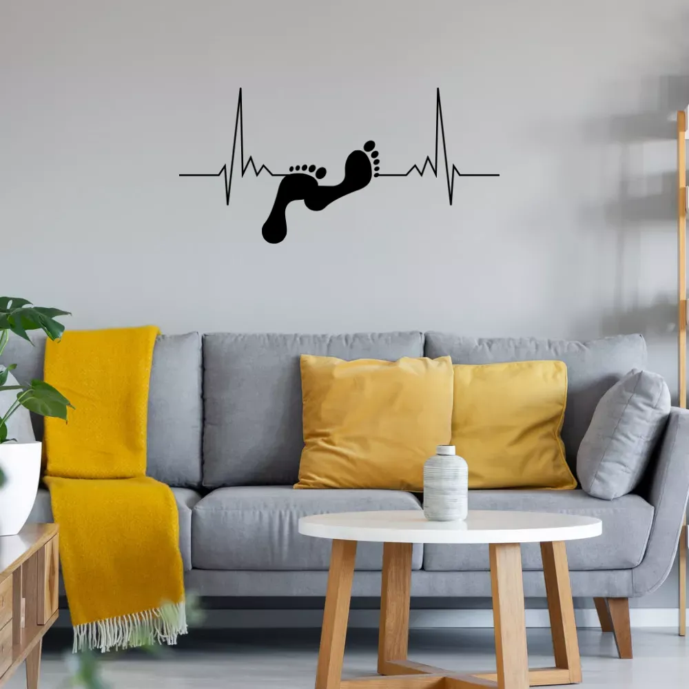 Verschönere deine Wohnzimmer mit einen Barfuss Herzschlag Wandtattoo in deiner Wunschfarbe. Du erhälst das geplottete Motiv auf einer Transferfolie. Optional kann der Aufkleber auch als Barfuss Herzschlag Heckscheibeaufkleber für Autos verwendet werden.