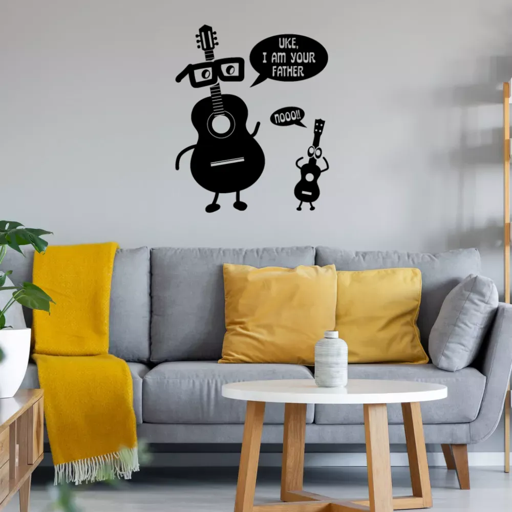 Das Design Uke I Am Your Father kombiniert humorvoll die Welt der Ukulele mit einem witzigen Spruch, der eindeutig Musikliebhaber und Gitarrenfans anspricht. Verschönere dein Wohnzimmer mit einem einzigartigen Wandtattoo in deiner Lieblingsfarbe! Du erhältst das kunstvoll geplottete Motiv auf einer praktischen Transferfolie, die das Anbringen kinderleicht macht. Das Motiv zeigt eine stylische Ukulele, die zentral im Design platziert ist, und um sie herum sind kreative grafische Elemente, die den Spaß an der Musik widerspiegeln. Zusätzlich besteht die Möglichkeit, den Aufkleber auch als Heckscheibenaufkleber für Autos zu nutzen – so kannst du dein individuelles Design überall zeigen! Verleihe deinem Raum eine persönliche Note und sorge für einen echten Blickfang!. Die Kombination aus der Ukulele und dem eingängigen Spruch sorgt für eine originelle und zugleich unterhaltsame Präsentation, die nicht nur Bassgitarristen, sondern auch alle, die Freude an Musik haben, anspricht.