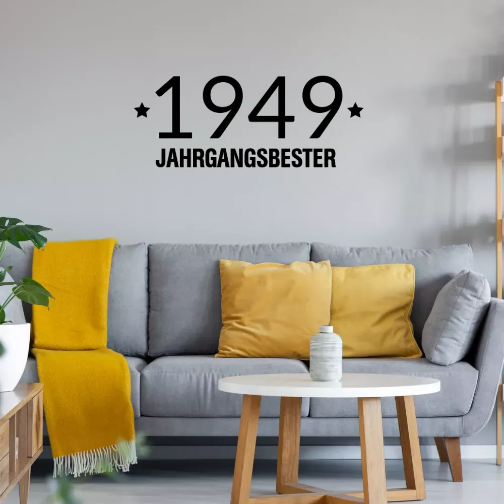 Verschönere deine Wohnzimmer mit einen Jahrgangsbester 1949 Wandtattoo in deiner Wunschfarbe. Du erhälst das geplottete Motiv auf einer Transferfolie. Optional kann der Aufkleber auch als Jahrgangsbester 1949 Heckscheibeaufkleber für Autos verwendet werden.