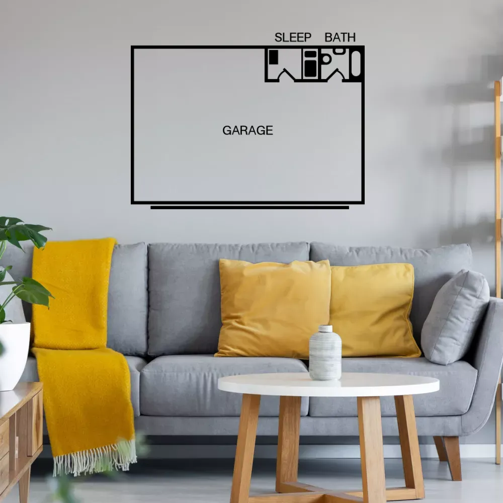 Stell dir eine Traumwohnung vor, die das Herz eines jeden Autofreundes höher schlagen lässt. Verschönere dein Wohnzimmer mit einem einzigartigen Wandtattoo in deiner Lieblingsfarbe! Du erhältst das kunstvoll geplottete Motiv auf einer praktischen Transferfolie, die das Anbringen kinderleicht macht. Diese moderne Wohnung erstreckt sich über zwei Ebenen, um sowohl Wohnkomfort als auch großzügigen Platz für automobile Leidenschaft zu bieten. Zusätzlich besteht die Möglichkeit, den Aufkleber auch als Heckscheibenaufkleber für Autos zu nutzen – so kannst du dein individuelles Design überall zeigen! Verleihe deinem Raum eine persönliche Note und sorge für einen echten Blickfang!. Eingangsbereich: