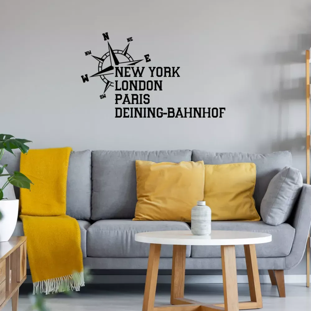 Die Weltstadt Deining-Bahnhof zusammen in einem Atemzug mit New York, London und Paris vor einer Windrose. Verschönere dein Wohnzimmer mit einem einzigartigen Wandtattoo in deiner Lieblingsfarbe! Du erhältst das kunstvoll geplottete Motiv auf einer praktischen Transferfolie, die das Anbringen kinderleicht macht. . Zusätzlich besteht die Möglichkeit, den Aufkleber auch als Heckscheibenaufkleber für Autos zu nutzen – so kannst du dein individuelles Design überall zeigen! Verleihe deinem Raum eine persönliche Note und sorge für einen echten Blickfang!.