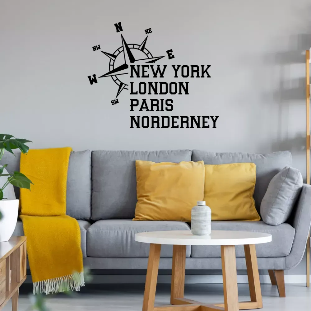 Die Weltstadt Norderney zusammen in einem Atemzug mit New York, London und Paris vor einer Windrose. Verschönere dein Wohnzimmer mit einem einzigartigen Wandtattoo in deiner Lieblingsfarbe! Du erhältst das kunstvoll geplottete Motiv auf einer praktischen Transferfolie, die das Anbringen kinderleicht macht. Norderney ist eine der ostfriesischen Inseln in der Nordsee und gehört zum Bundesland Niedersachsen. Zusätzlich besteht die Möglichkeit, den Aufkleber auch als Heckscheibenaufkleber für Autos zu nutzen – so kannst du dein individuelles Design überall zeigen! Verleihe deinem Raum eine persönliche Note und sorge für einen echten Blickfang!. Sie liegt etwa 6 Kilometer nördlich des Festlandes und gehört zum Nationalpark Niedersächsisches Wattenmeer.